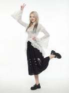 A vision for the gothic bride and the forest specter - the Spectral Lace Tunic drifts like fog through a spring morning. A gothic bodice stitched from lace and lamentations, made for those who haunt the daylight with a porcelain chill. Intricate in texture, ethereal in movement.
