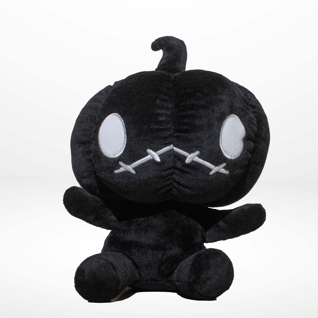 A harvest of gloom - Grim the Pumpkin brings haunted charm to every corner. Cloaked in black, soft and spectral, he’s the plushy embodiment of a cursed autumn.